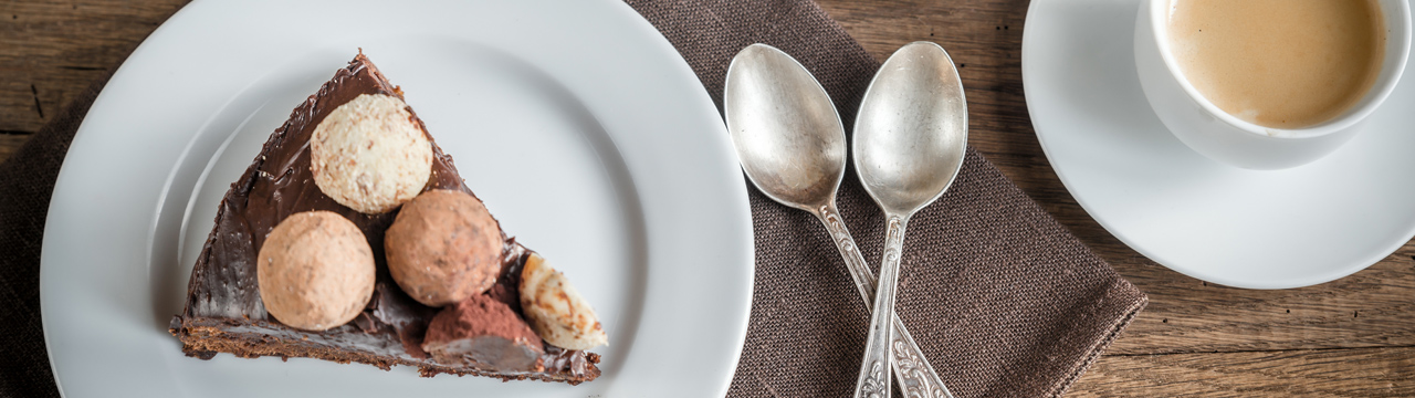 Schließlich stehen wir vor dem Café. Dort gibt es gleich im Schaufenster das reichhaltige Kuchen- und Tartebuffet zu betrachten. Ich freue mich bereits auf den Genuss! Und meine Patientin? Guckt skeptisch, zweifelnd. „Na ja, schaut ja ganz lecker aus“, gibt sie schließlich schief lächelnd von sich. Wir betreten das Café. „Ach, wie gut, hier ist es ja gar nicht so spießig, wie der Rest von Neuhausen“, lacht sie. „Ja, deshalb habe ich das ja auch für sie ausgesucht.“ Also, Platz aussuchen, hinsetzen, Tarte und Kaffee bestellen. Die Kuchenstücke landen vor uns: Mocca-Cassis-Trüffel und Banane-Schokomousse. „Und wie schmeckt´s?“, frage ich. „Na ja, schmeckt nach ganz schön viel Sahne...“. „Ja! Und?“, lache ich, und versuche damit zu vermitteln, dass das auch okay ist. „Doch schmeckt schon ziemlich lecker.“, gibt sie schließlich zu. Und so essen wir in Ruhe weiter.